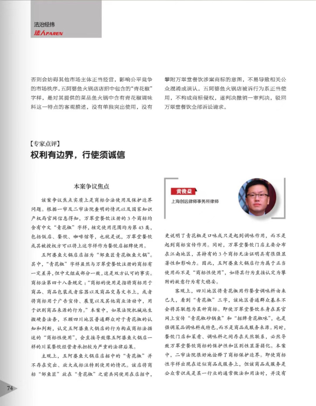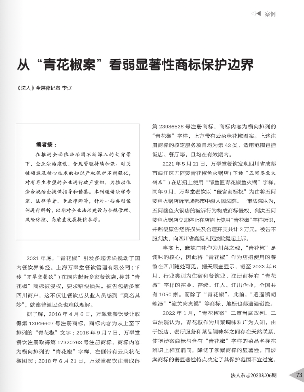 果洛辉知简讯 | 辉知队黄俊益律师应“法治日报”旗下杂志邀请,就“青花椒”案发表专家点评