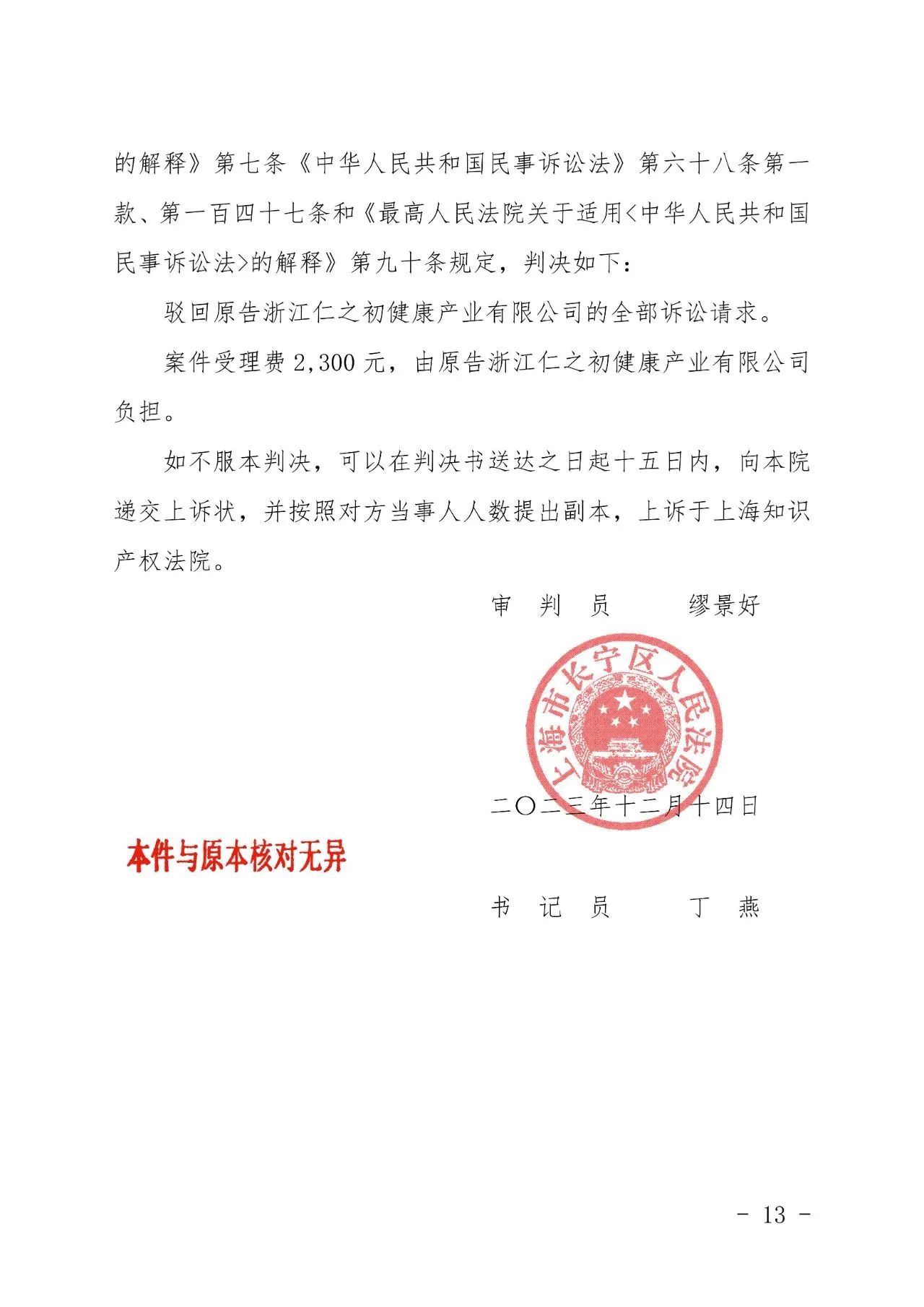 果洛辉知胜诉佳讯 | “仁之初健康”著作权及不正当竞争纠纷案,法院:驳回全部诉讼请求!